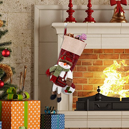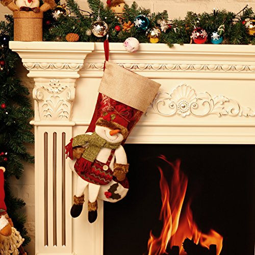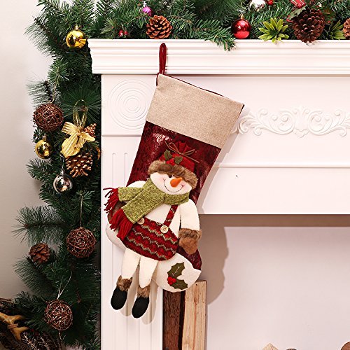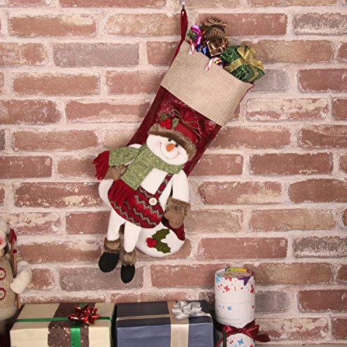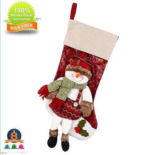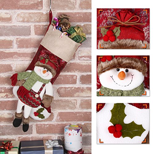 Christmas Stocking Sock, TORUBIA Christmas 3D Tree Wall Hanging Sock Larger Sock Candy bags With Lovely Santa Reindeer Snowman Decoration 8.6×21.2 Inch Perfect For Christmas Stocking (Snowman)