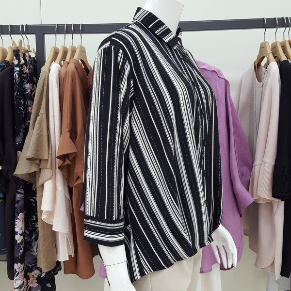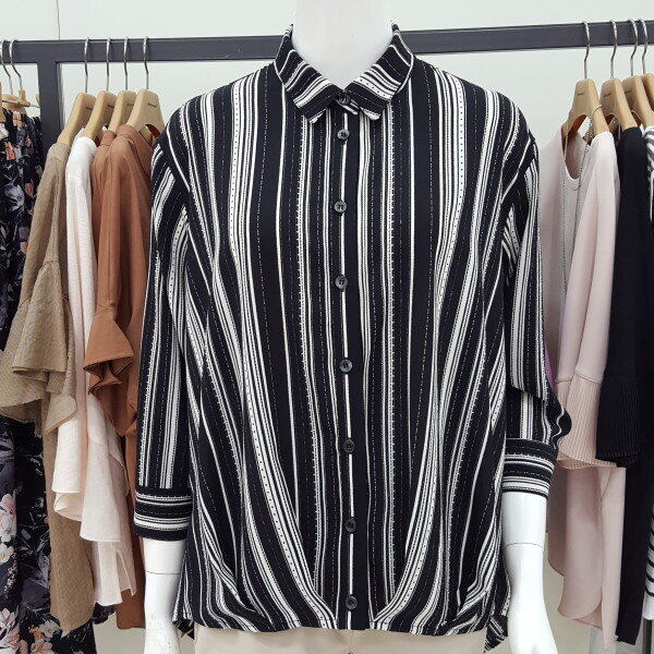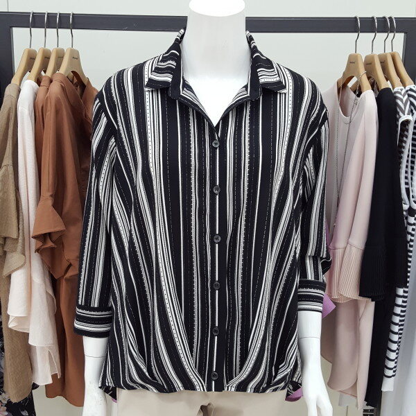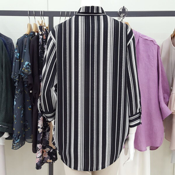 셔츠형 언발란스 7부 블라우스입니다 신축성 약간 있어요