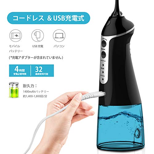 コンパクトで持ち歩く便利 USBケーブルを配置しますのでどこでも充電でき、しかも1400mAhモバイルバッテリーを装置して、4時間充電して二週間連続使える。電動ブラシより若干大きくて持ちやすいすごく便利で、出張、旅行に適用。 ご注意:充電前はUSB接続口の保護カバーを取り外して、電源ケーブルを本体に挿入します。充電完了としたら、保護カバーを差し込んでください。 | 商品仕様 電圧:100-240VAC 50/60Hz バッテリ:1400mAh 入力パワー:5W アダプタプラグ:DC5V,1A 回転スピード:1400-1800回/分 水圧範囲:30-100PSI 水流スピード:≧200ml/分 騒音標準:<72デシベル 防水:IPX7 充電時間:4時間 出水時間:1-15秒 | バッケージ内容: