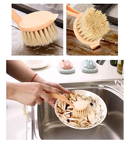 Hulless 10 Inch Long Handle Pan Cleaning Brush,Pot Brush,Round head with densely packed,stiff natural plant fibers The bristles 2 pcs