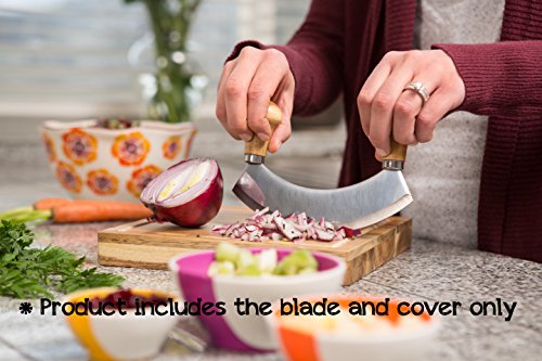 Mezzaluna Mincing Knife with Free Cover - Specialty Chopping Knife for Mincing and Dicing Herbs, Garlic and More