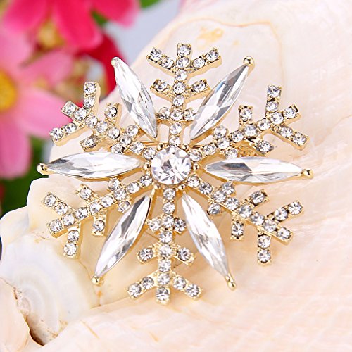 EVER FAITH Holiday Gifts Gold-Tone Austrian Crystal Winter Art Deco Snowflake Flower Brooch Pin