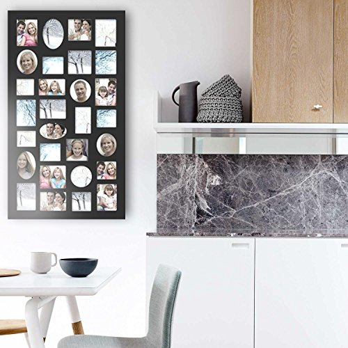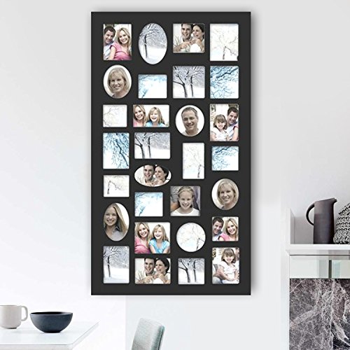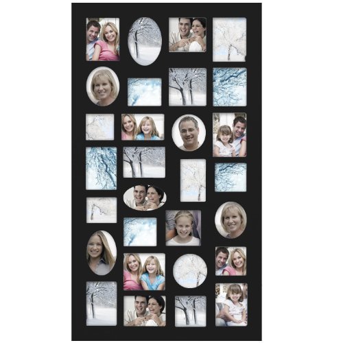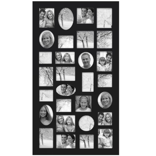 Adeco [PF9105] Decorative Black Wood Wall Hanging Collage Picture Photo Frame, 29 Openings, Various Sizes between 3.25x2.75" and 4.5x4"; Square, circular, oval and rectangular openings