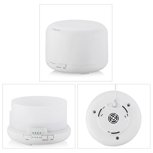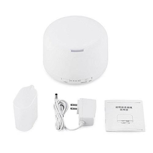 Specifications: [Applicable Area] Aromatherapy: 430 Sq ft / Humidification: 269 Sq ft [Size] 168*121mm [Weight] 520g [Input] AC 100-240V 50/60Hz [Output] DC24V 650mA [Length of power line] 170cm [Timer] 60 / 120 / 180 minutes / On [Ultrasonic Frequency] 2.4 MHz - Advanced Ultrasonic Diffusing Technology [Duration Time] Do not use for more than 10 hours. When time is up or there is no water, it will turn off automatically [Water Capacity] 500 ml [LED Light Color] - Independent Light Control / Multiple Color Light / Gradual Changing or Fixed Mode or Off. Provides soft illumination [Main Material] PP, ABS