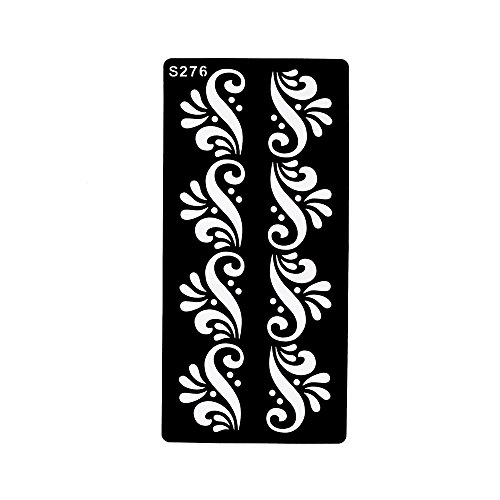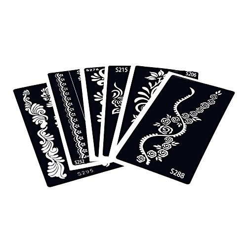 -. Feature : 6 Pieces hollow temporary tattoo stencil in package,including one of each S206, S215, S252, S276, S288 and S295 as picture. / Latest and fashionable designs!!! / The tattoo stencil is self-adhesive and easy to apply. / The tattoo stencil suitable for Henna Paste, Glitter and Airbrush Painting. / You can stick the stencil on shoulder,waist,sleeve,back,leg,arm,chest,hand,feet,neck and so on.