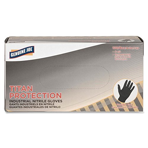 Genuine Joe GJO15375 Titan Nitrile Powder Free Industrial Gloves, Large, Black (Pack of 100)