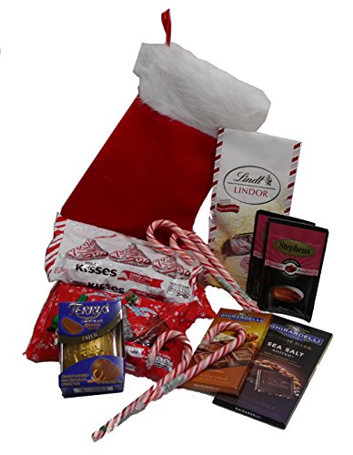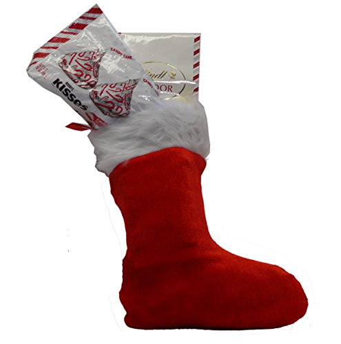 Chocolate Lovers Favorites Pre-stuffed Red Plush Christmas Stocking Gift Bundle - Includes 15 Items: Stocking, Hersheys Holiday Kisses, Lindt Truffles,...