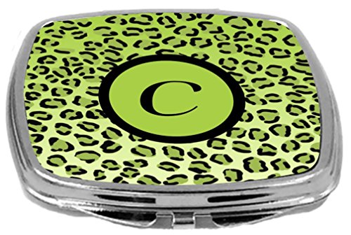Rikki Knight Compact Mirror, Letter c Initial Lime Green Leopard Print