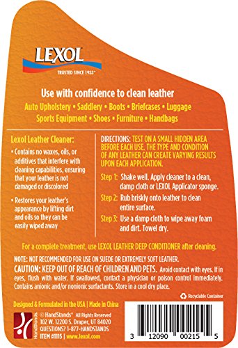 -. Feature : The carefully balanced formula falls within the pH range of leather, which makes it safer for leather and the alkaline-free formula contributes to the life of your leather / It is concentrated, so it cleans effectively with a considerably smaller quantity of product / The foaming action penetrates the pores of leather to lift and suspend dirt and oils / It is purely a cleaner that contains no waxes, oils or additives that can interfere with its cleaning action or cause dirt to become trapped in the leather / It rinses easily, leaving leather healthy, supple and able to breathe; 500 milliliters