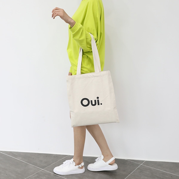 |  가방 전면에 영문 레터링으로 포인트를 준 oui 에코백이에요!