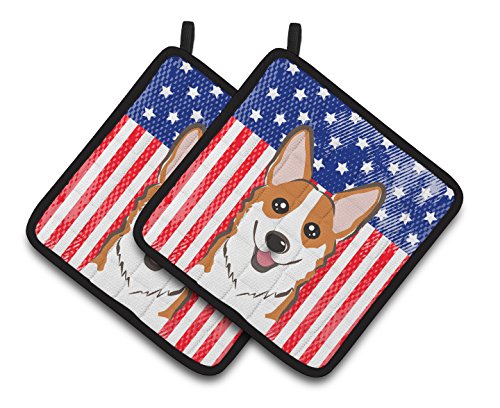 Caroline's Treasures American Flag & Red Corgi Pair of Pot Holders BB2184PTHD, 7.5HX7.5W, Multicolor
