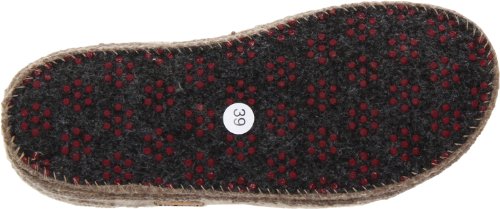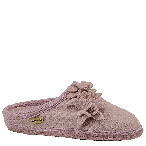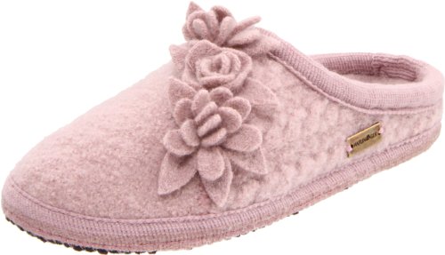 Wool. Felt sole. 100% boiled Wool upper. Contoured footbed. Felt flower accent and cable-knit detailing. Wool felt sole with traction dots. Latex arch support