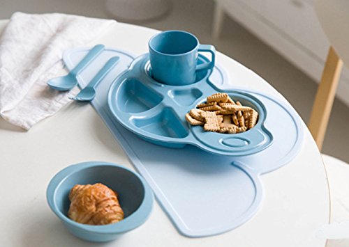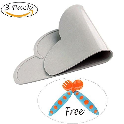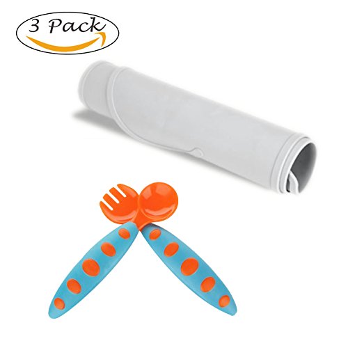 -. Title : Silicone Baby Placemat and spoon fork- Kids Reusable Travel PlacematTiny Diner Portable Roll Up Washable Restaurant Food Meal Mat for Toddler Child infant -Pink