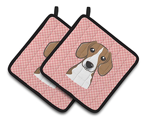 Caroline's Treasures Checkerboard Pink Beagle Pair of Pot Holders BB1239PTHD, 7.5HX7.5W, Multicolor