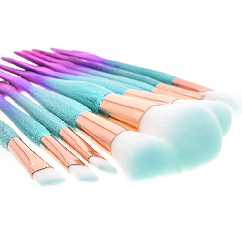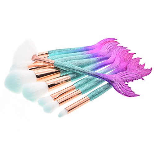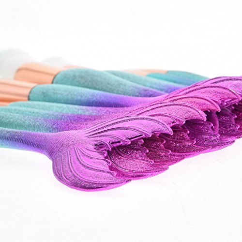 Dolovemk 10 Pieces 4th Gen Mermaid Fish-tail Soft Makeup Brushes Set (Blue-purple)
