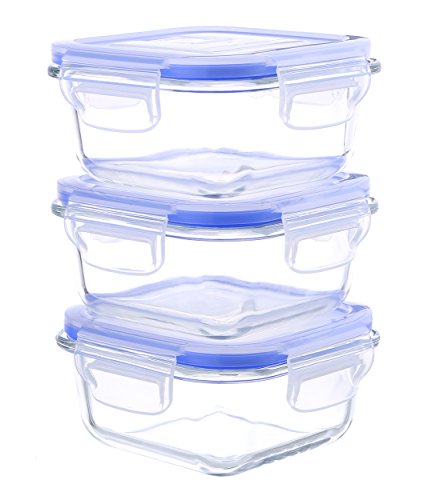 Kinetic Go Green Glassworks Elements Series 6-Piece Square Food Storage Set includes 3 Containers and 3 Vented Lids 55079