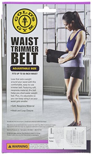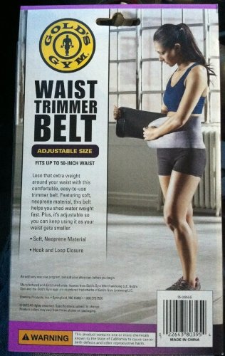 Studio : Gold's Gym Publisher : Gold's Gym Binding : Health and Beauty Product Description Lose unwanted weight with this easy to use waist trimmer belt. The soft, rubber foam material is conmfortable and helps you shed water weight fast. It is adjustable and fits up to a 50 inch waist.
