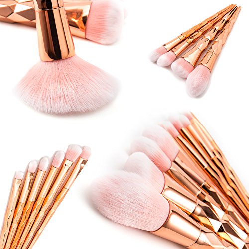 -. Title : Makeup Brushes Set Rose Gold Unicorn Tilted Cornered Handle 7pcs Women Essential Cosmetic Kit Blending Blush Foundation Contour Concealer Eyeliner Lip Tools