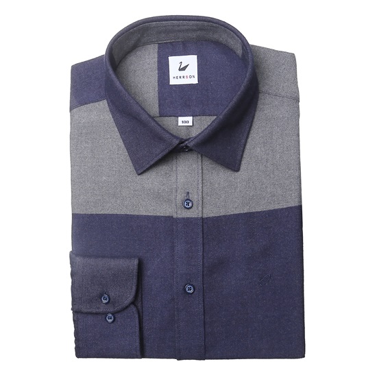 -혼방소재의 구김이없는 멀티무늬의 슬림핏 기모남방.