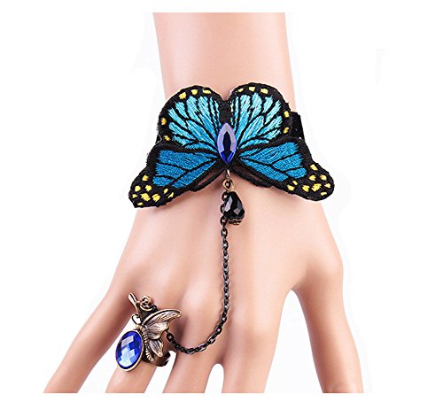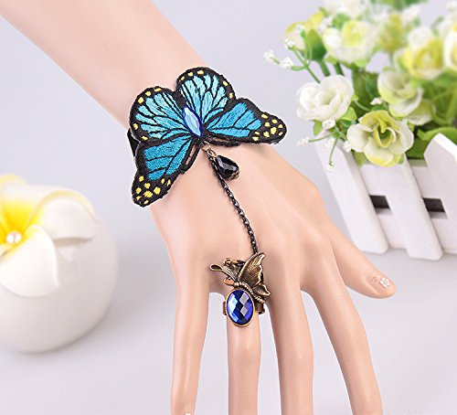 -. Binding : Jewelry -. Brand : QTMY -. Color : Blue -. Department : womens -. EAN : 6887493942796 -. Feature : Item Materials:lace,Alloy / Catch this beautiful accessories for you / Match with suitable apparel for different occasion / If you have problems about the item you got, Please feel free to contact with us. We will help you to solve the problems well. Contact with Seller Qi Tian to get five Stars customer service. Thank you so much. -. IsAutographed : 0 -. Label : QTMY -. Manufacturer : QTMY -. PackageQuantity : 1 -. ProductGroup : Jewelry -. ProductTypeName : FASHIONNECKLACEBRACELETANKLET -. Publisher : QTMY -. Studio : QTMY -. Title : QT Blue Gothic Butterfly Bracelet Finger Ring Combo Set Bangle Hand Chain Harness