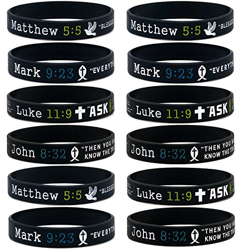 (12-pack) New Testament Bible Bracelets with Scripture Verses from the Four Gospels - Wholesale Bulk Pack of Silicone Rubber Wrist Bands - Religious Christian Gifts for Men Women Teens