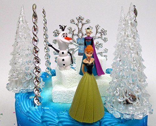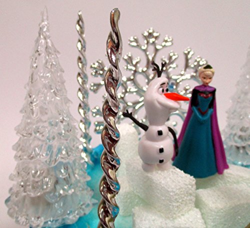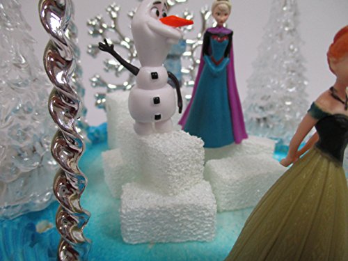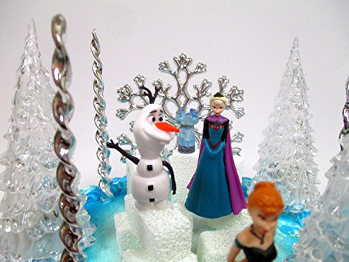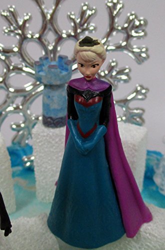 Winter Wonderland Princess Elsa Frozen Birthday Cake Topper Set Featuring Anna, Elsa, Olaf and Decorative Themed Accessories
