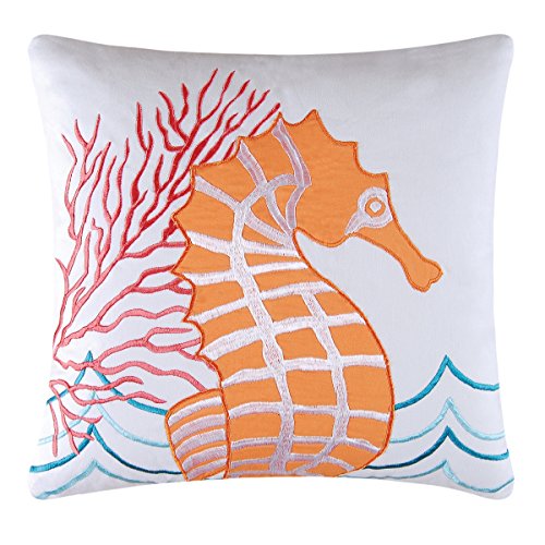 White pillow with a Blue Crab on Orange Coral