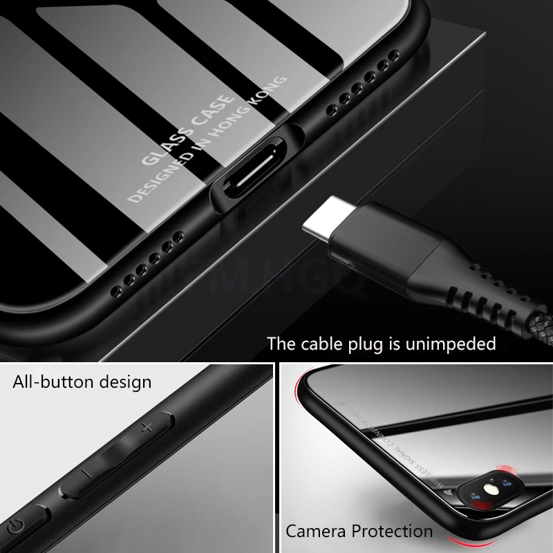 Material:Silicone Frame + Glass Back Cover