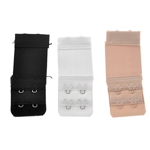 TINKSKY 3pcs Women's Elastic Bra Lingerie Extenders 2-Hooks 2 Rows Extension Straps in Different Colors (Black & White & Nude)