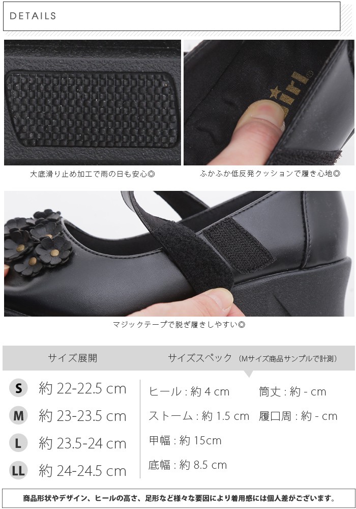 | サイズ | Sサイズ(22.0~22.5cm) Mサイズ(23.0~23.5cm) Lサイズ(23.5~24.0cm) LLサイズ(24.0~24.5cm) |