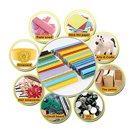 [Strong Adhesive]: The Color Glue Gun Sticks Will Strongly Bond Arts And Crafts such as fabrics, Paper, Glass, Wood, Plastics, Ceramics, Carton Sealing, Crafts Adhesive, Electronic Appliances and Other Adhesive