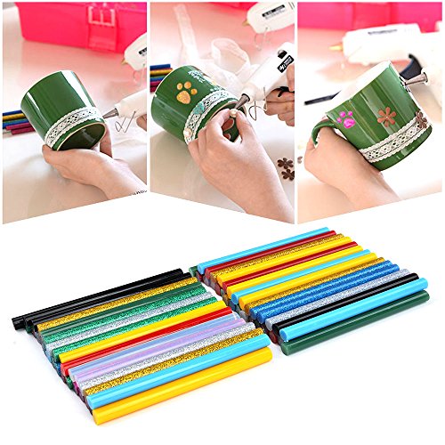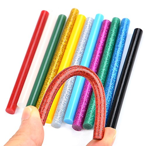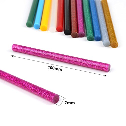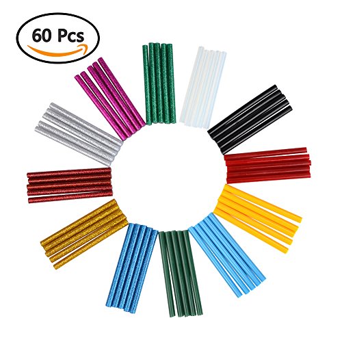 [Multi-Color Hot Glue Gun Sticks]: 60 Pieces,12 Colors Total,5 Pieces for Each Color: Glitter Blue, Glitter Red, Glitter Green, Glitter Rose Red, Glitter Silver, Glitter Gold, Dark Green, Transparent Color, Blue, Black, Red, Yellow. Great for Arts Crafts, DIY, General Repairs and School DIY Crafts Projects