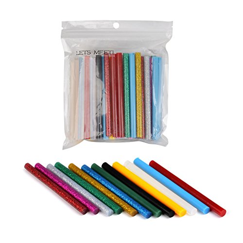 LETS MEETi 60Pcs Mixed 12 Colors Glitter Hot Melt Adhesive Glue Sticks 7x100mm for Mini Glue Gun (20 W) Suit for Holiday Crafts, School Projects and DIY
