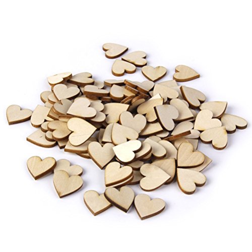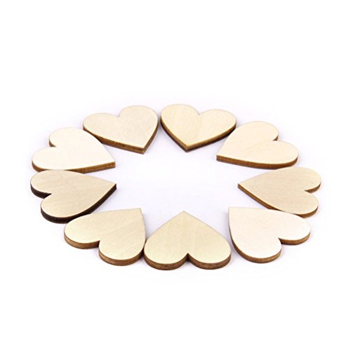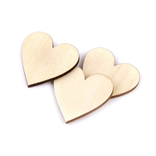 OULII Blank Heart Wood Slices Discs Wedding Christmas Ornaments, Pack of 100, 20mm