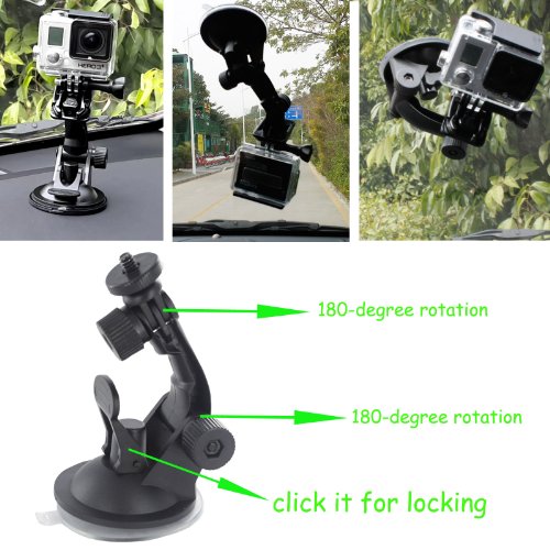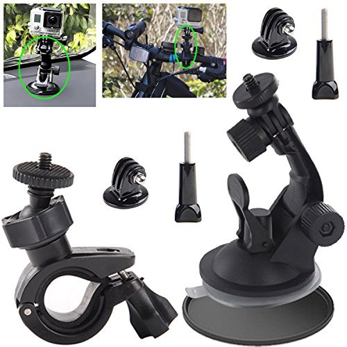 EEEKit 7-in-1 for GoPro Hero HD 3+/3/2/1, Bike Handlebar Mount for Camera + Suction Cup Mount for Camera + Suction Cup Pad + 2-Pack Tripod Mount Adapter for GoPro Hero HD 3+/3/2/1 + 2-Pack Long Screw Bolt