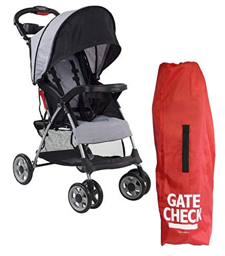 -. Binding : Baby Product -. Brand : Kolcraft -. Feature : Perfect for traveling and day trips with a compact fold and lightweight design (only 11.8lbs)! / Convenient one-hand and self-standing fold; Large, easy-access storage basket holds all baby's necessities; Multi-position reclining seat keeps child comfortable / Three-tier, extended canopy for maximum sun coverage and peek-a-boo window; Parent tray with two drink holders and extra storage area / Removable child tray with dual cup & juice box holder; All-terrain wheels and front suspension for a smooth ride; Adjustable 5-point safety harness / Gate Check Travel Bag - Draw-string closure with lock; Webbing handle for easy lifting; Large graphics with identification box -. IsAdultProduct : 0 -. Label : Kolcraft -. Manufacturer : Kolcraft -. ProductGroup : Baby Product -. ProductTypeName : BABY_PRODUCT -. Publisher : Kolcraft -. Studio : Kolcraft -. Title : Kolcraft Cloud Plus Lightweight Stroller with Gate Check Travel Bag