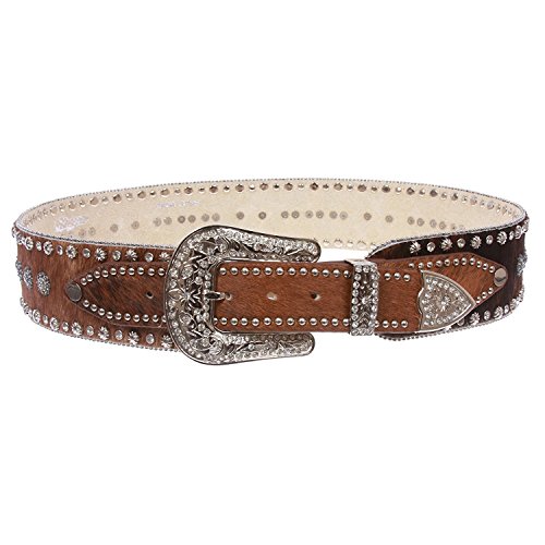 (Monique)/Accessories/Belts Buckles/DIRECT FROM USA/MONIQUE Womens Brown High Waist Animal Fur Western Rhinestone Fashion 2.5' Belt