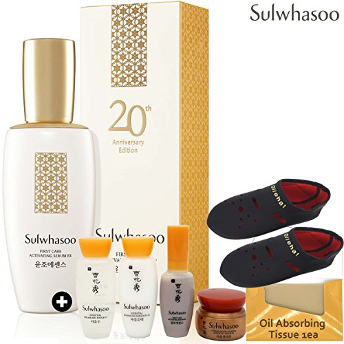 -. Feature : Sulwhasoo First Activating Serum 20th ANN Edition - 120ml/ 4.05oz / ★(GIFT)Travel kit: First Care Activating Serum EX -8ml ★Essential Balancing Water EX -15ml ★Essential Balancing Emulsion EX-15ml ★ Concentrated Ginseng Renewing Cream EX- 5ml / ★ The new JAUM Balancing ComplexTM, now 180 percent more concentrated than before, improves your skin's complexion by caring for the signs of aging, giving you a healthier looking glow. / ★JAUM Balancing ComplexTM fights off signs of aging. / ★ JAUM Balancing ComplexTM restores skin balance.