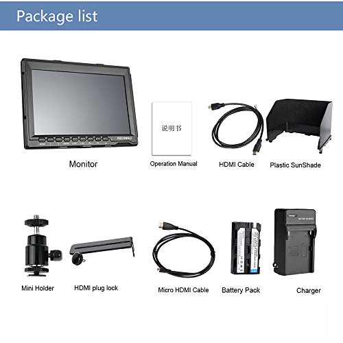 Feelworld FW74K 7 Inch Ultra HD 1280x800 IPS Screen Camera Field Monitor Supports 4K UHD 3840*2160p(29.97/25/23.98) for Panasonic GH4 SONYA7S SONYFS7, comes with Battery Kit