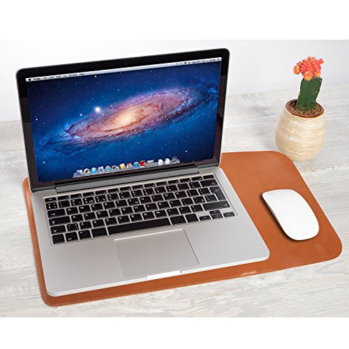 DURABLE & EXQUISITE STITCHING:Made by high quality leather, which prevents it from fraying, indenting, scratching and ensures longer lifespan. Unique fixing strap can hold laptop in place. The exquisite stitching is neat and beautiful