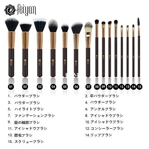 【전용의 메이크 브러시】feiyan의 메이크 브라스(황동)은 분함축이 좋고, 길게 사용해 주십니다.상품은 15개세트입니다,매일의 메이크업에 필요한 도구가 갖추어지고 있습니다,메이크 브러시에,보다 한층 더 여자력을 업 합시다.