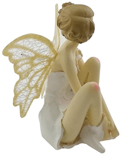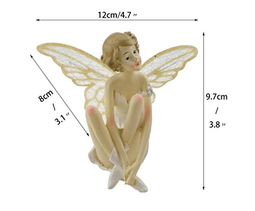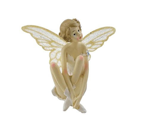 Cute Pure Angel Fairy With Wings In White Tube Dress Resin Ornament Home Wedding Decoration (Bending knee sitting)