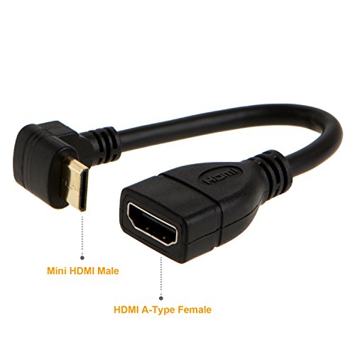 Mini HDMI to HDMI, CableCreation Upword Angled Mini-HDMI Male to HDMI Female Converter Adapter Cable (0.5 Feet), Support 3D, 1080P Resolution, 0.15M/ Black