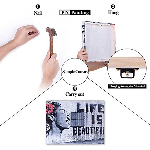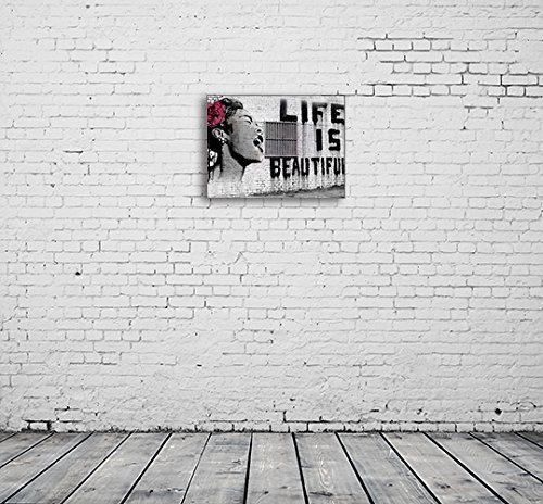 1: Banksy life is beautiful, canvas wall art printed and framed by PIY Painting. The artist-grade canvas has strong sense of texture and full of artistic touch, reflects your noble temperament and taste. This canvas picture dimensions: 12"x16"x 1 piece = 30x40cm x 1 piece, close to A3 size.
