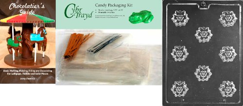 Cybrtrayd Poinsetta Truffle All Occasions Chocolate Candy Mold with Chocolatier's Bundle, Includes 50 Cello Bags, 50 Twist Ties and Chocolatier's Guide