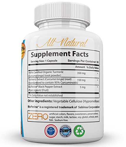 INCLUDES BIOPERINE AND STANDARDIZED TO CONTAIN 95% CURCUMINOIDS Our Organic Turmeric Curcumin includes Bioperine which has been shown to significantly increase the absorption of curcumin. Our standardized organic extract ensures optimum efficacy and is 100% pure and produced entirely in the USA.