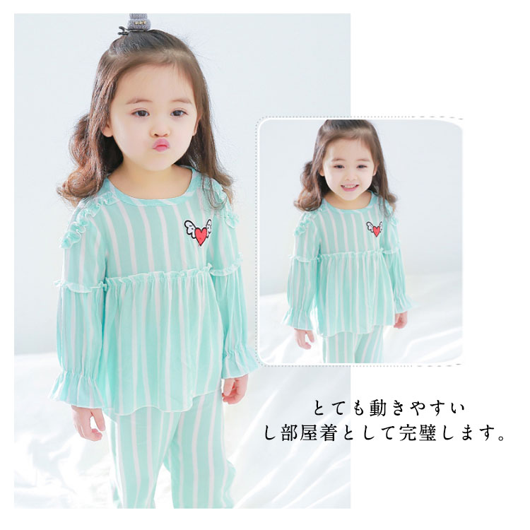 | かわいいパジャマ上下セットが新登場です。とても動きやすいし部屋着として完璧します。柔らかくサラッとした生地で夏の終わりから秋にかけてまた春先も幅広くご使用いただけます。肌触りがとっても気持ちいいコットン素材は、着心地良く敏感肌のベビーちゃんにも安心です。 | |