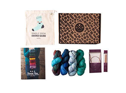 Knit Picks Sock Knitting Kit – 4 hanks Hand Painted Sock Yarn with Pattern Book and Needles (Ocean)