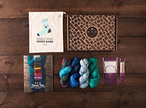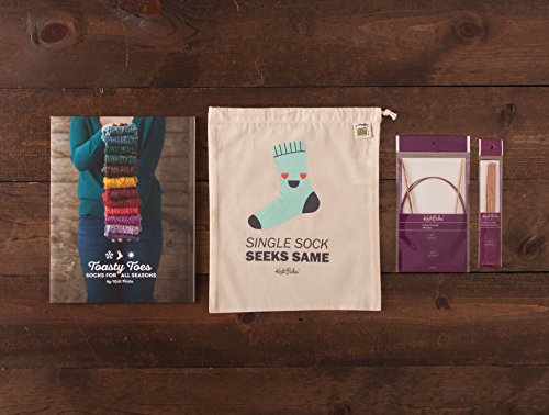 - Kit Includes: 4 hanks of Hawthorne Sock yarn — Fingering Weight {80% Superwash Fine Highland Wool, 20% Polyamide (Nylon); 357 yds/100g}, “Toasty Toes” Knit Picks exclusive pattern collection book, US size 2 (2.75 mm) 40” wooden circular knitting needles, a set of US size 2 (2.75 mm) 6” double pointed needles, and a 100% cotton canvas drawstring project bag; 1,428 yards total yardage