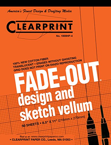 Clearprint 1000H Design Vellum Pad with Printed Fade-Out 4x4 Grid, 16 lb., 100% Cotton, 8-1/2 x 11 Inches, 50 Sheets, Translucent White (10004410)